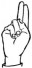 На ћирилици написано ЕМА КРАГИЋ састоји се из 9 слова [?]. Исписано ћириличном једноручном азбуком за глувонеме: